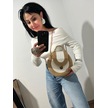 Hasır Çanta, Silindir Çanta, Tasarım Çanta,ekru Hasır El Çantası Hasır