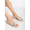 Hasır Kelebek Taş Tokalı Nude Kadın Kısa Topuklu Terlik-3090-nude Ten