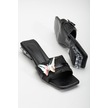 Hasır Kelebek Taş Tokalı Siyah Kadın Kısa Topuklu Terlik-3087-siyah Siyah