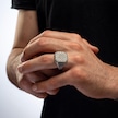 Supertrend Gümüş Beyaz Çizgili Havlit Taşlı Kare Erkek Yüzük Gümüş