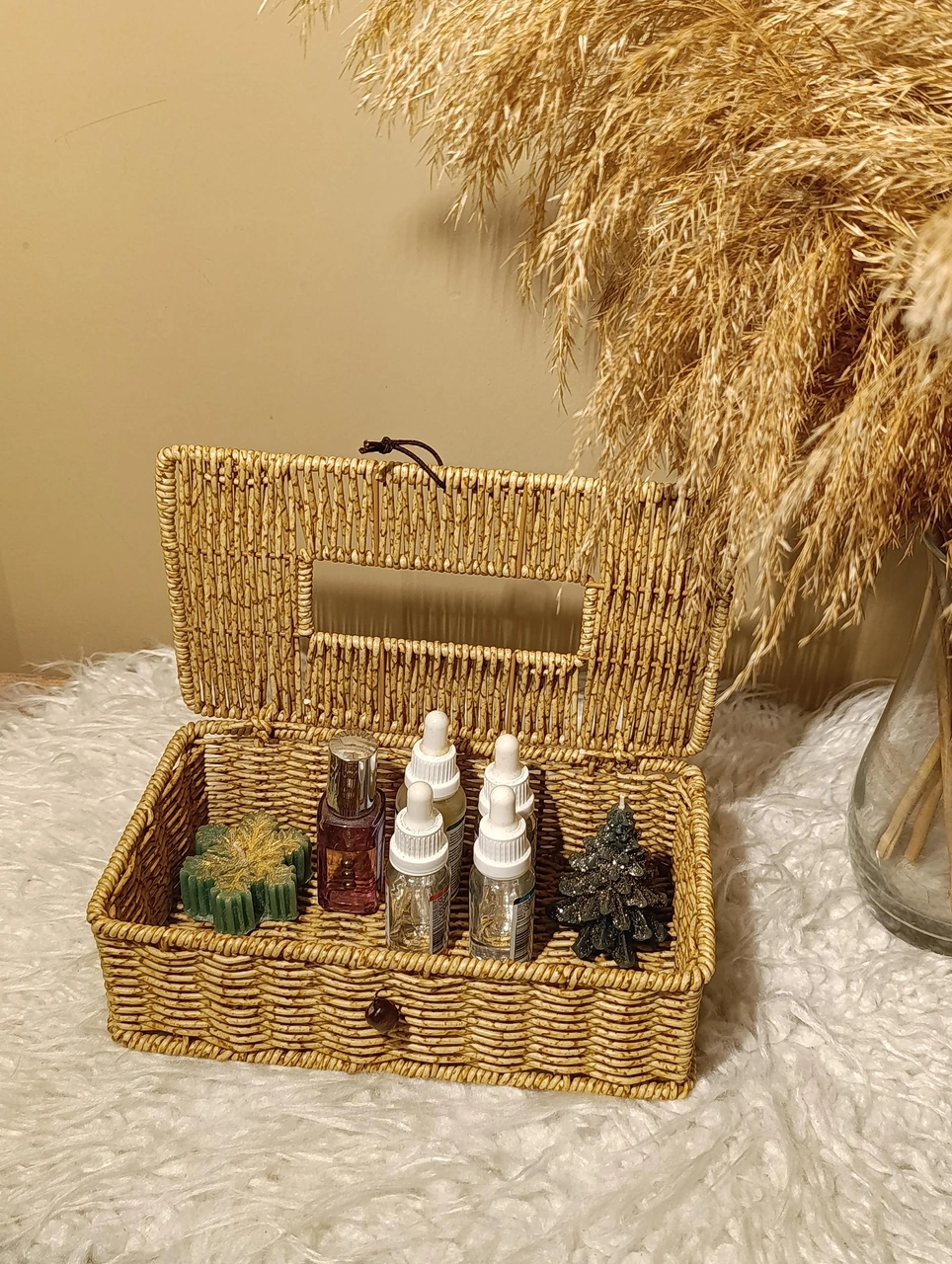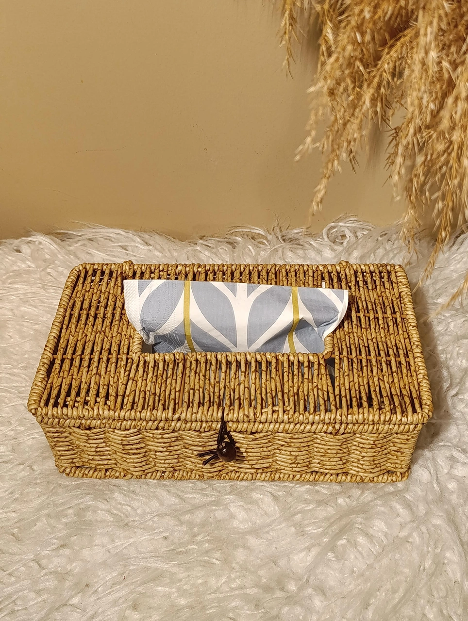 Hasır Rattan Kapaklı Dikdörtgen Organizer / Peçetelik Diğer