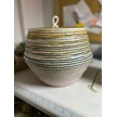 Hasır Sepet, Jüt Sepet, Doğal Hasır Sepet, Çok Amaçlı Dekoratif Hasır Sepet, Renkli Kapaklı Sepet Ekru