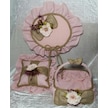 Tüfekçioğlu Ayıcıklı Ledli Yuvarlak Ahşap Pano Bebek Kapı Süsü Beyaz - Pembe Gri