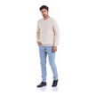 Hatemoğlu Erkek Regular Fit Düz Bisiklet Yaka Pamuklu Triko Kazak Bej Bej - Beyaz