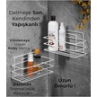 Haus Ömür Boyu Paslanmaz Yapışkanlı Banyo Düzenleyici Şampuanlık Duş Rafı 2 Adet Beyaz Tş-01 Siyah