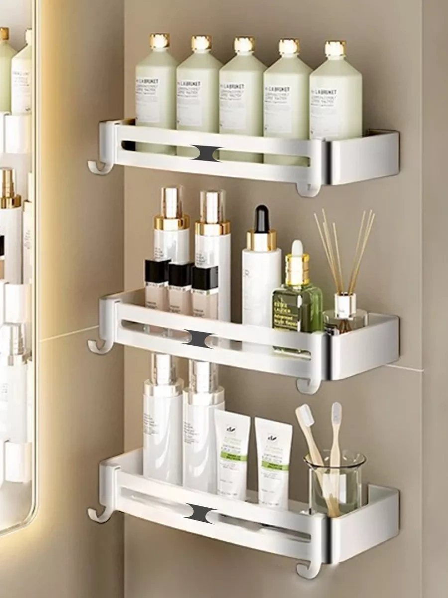 Hausland Duvara Monte Edilebilen Ve Delmeye Gerek Olmayan, Düz Askılı Banyo Rafı, 3 Adet 66385410 Gri
