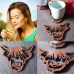 Hayvan Tasarımlı Ahşap Bardak Altlıkları,ahşap Highland İnek Bardak Altlıkları Kahverengi