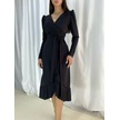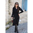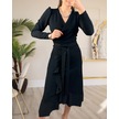 Hazego Krep Kumaş Midi Boy Kuşaklı Uzunkol Elbise 113 Cm Siyah