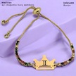 Haziran Ayı Doğumlarına Renkli Taş Desenli Taç Motifli 14 Ayar Altın Plakalı Hediye Bileklik-489ay Haziran