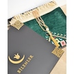 Hediyelik Seccade Tesbih Seti Kilim Desenli Kadife Astarlı Seccade, Kristal Tesbih Ve Özel Kutulu Lüks Hediye Seti Yeşil