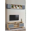 Helena Tv Sehpası Atlantik Çam Antrasit 2 Kapaklı Açık Raflı Bölmeli Tasarım 140x36x60 Cm