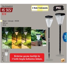 Helıos 10w 3renk Beyaz+4000k+günışığı Kazıklı Solar Bahçe Armatur Hs-5657