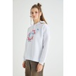 Panda Boks Baskılı Gri Kadın Sweatshirt