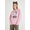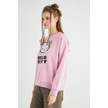 Hello Kitty Lisanslı Baskılı Oversize Fit Pembe Sweatshirt Renkli