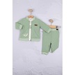 Hello Nakışlı % 100 Pamuk 3'lü Erkek Bebek Takımıııı Yeşil