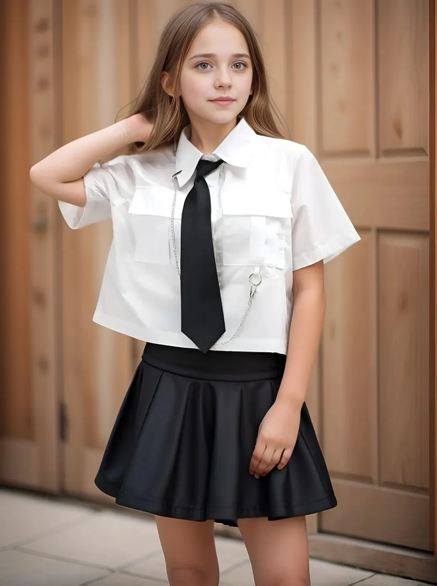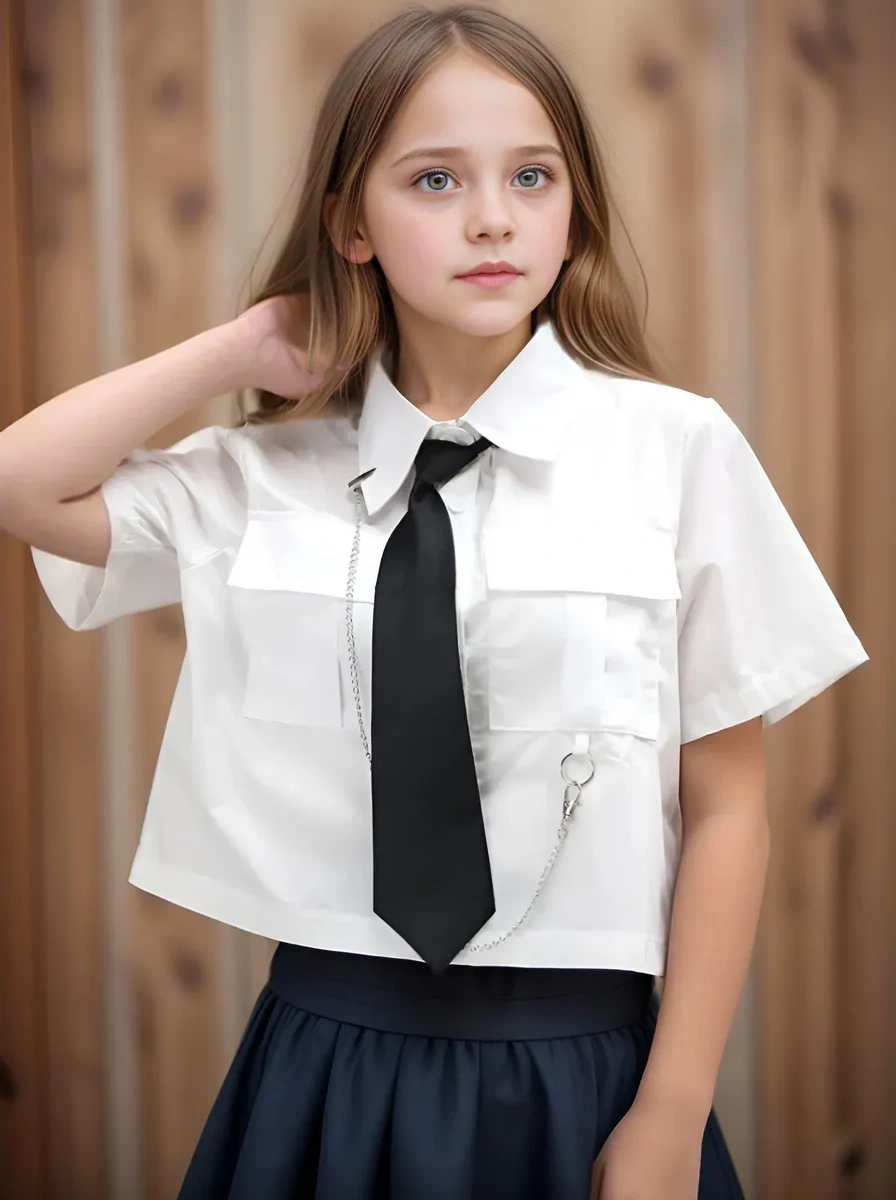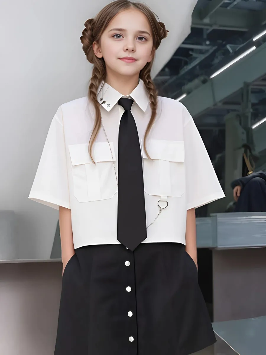 Heo Heo Y2k Tarzda Kargolu Kısa Okul Gömleği 207706024 Beyaz