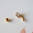Heppii Cerrahi Çelik Ucu Taşlı Göbek Piercingi Gold Renkli Altın