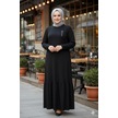 Hesna Kadın Derya Fitilli Doku Eteği Farbalı Broşlu Siyah Elbise Siyah