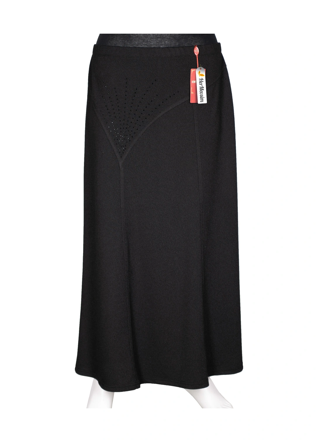 Hesna Kadın Nida Kışlık Büyük Beden Taşlı Astarsız Latikli Siyah Etek Siyah