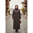 Hesna Kadın Nurel Büyük Beden Kışlık Kare Çıtçıtlı Kahve Pardesü Kahverengi