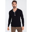 Heyss Düğmeli Detaylı Siyah Erkek Triko Kazak Siyah