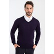 Heyss Mürdüm V Yaka Yünlü Erkek Triko Kazak Mürdüm