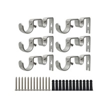 Hfambition Ağır Hizmet Tipi Çift Perde Askısı - 6'lı Paket, 2.5 Cm Çap Uyumlu, Metal Gümüş Renk
