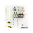 Hfambition Sus304 Paslanmaz Çelik Duş Dolabı, Delme Yok, 5 Kanca, Su Geçirmez Duş/ Mutfak Düzenleyici Rafı 2 Adet Gümüş