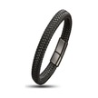 Hg.Aksesuar Siyah Deri Örgü Çelik Bileklik 7865
