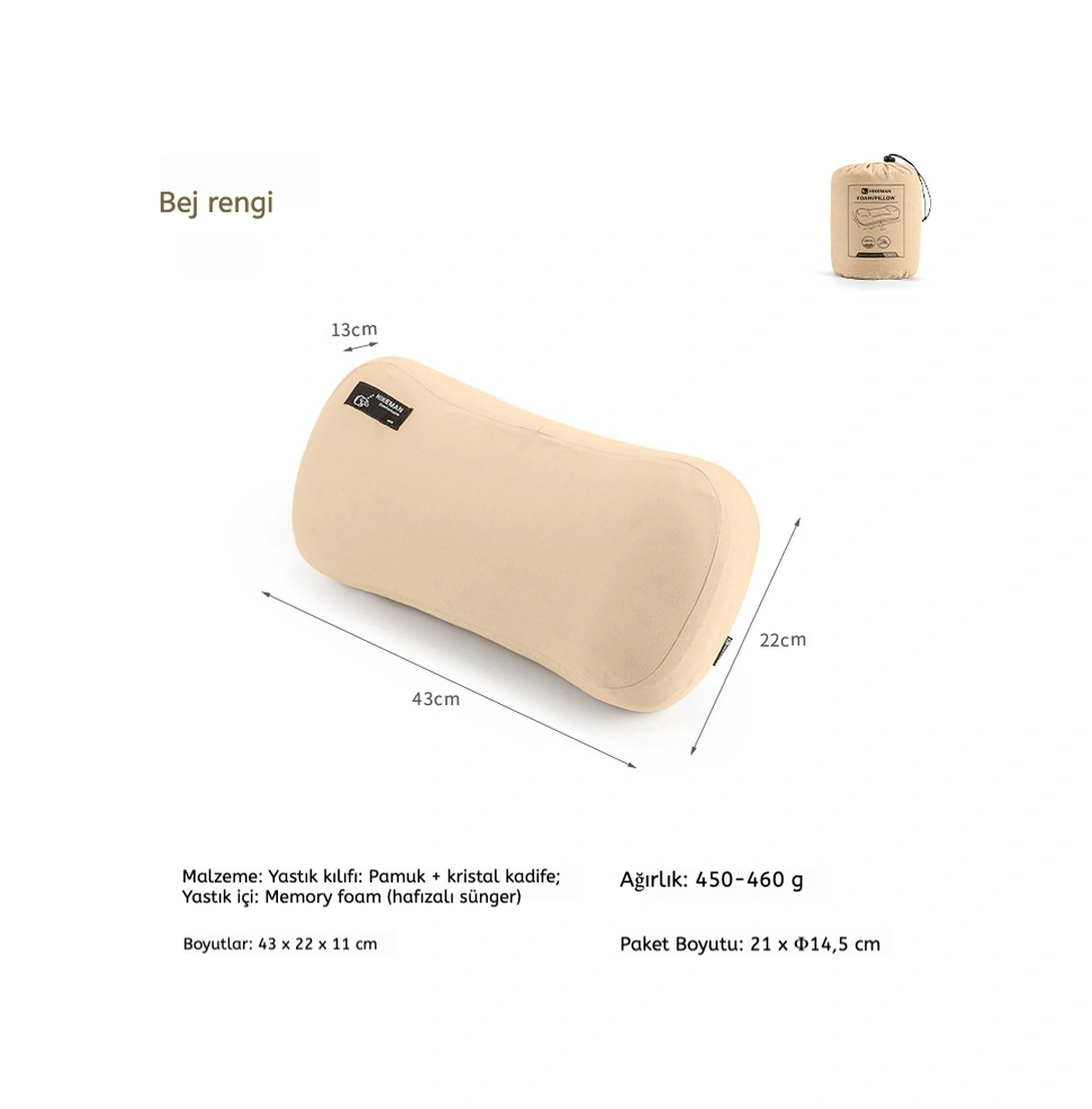 Hıkeman Kamp Yastığı Hafif, Memory Foam Seyahat, Kamp, Ofis Ve Bel Destek Yastığı Bej