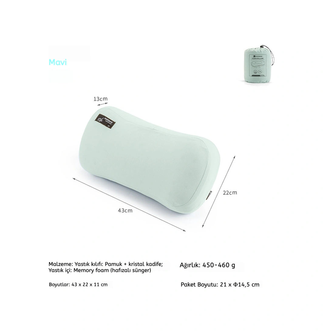 Hıkeman Kamp Yastığı Hafif, Memory Foam Seyahat, Kamp, Ofis Ve Bel Destek Yastığı Mavi