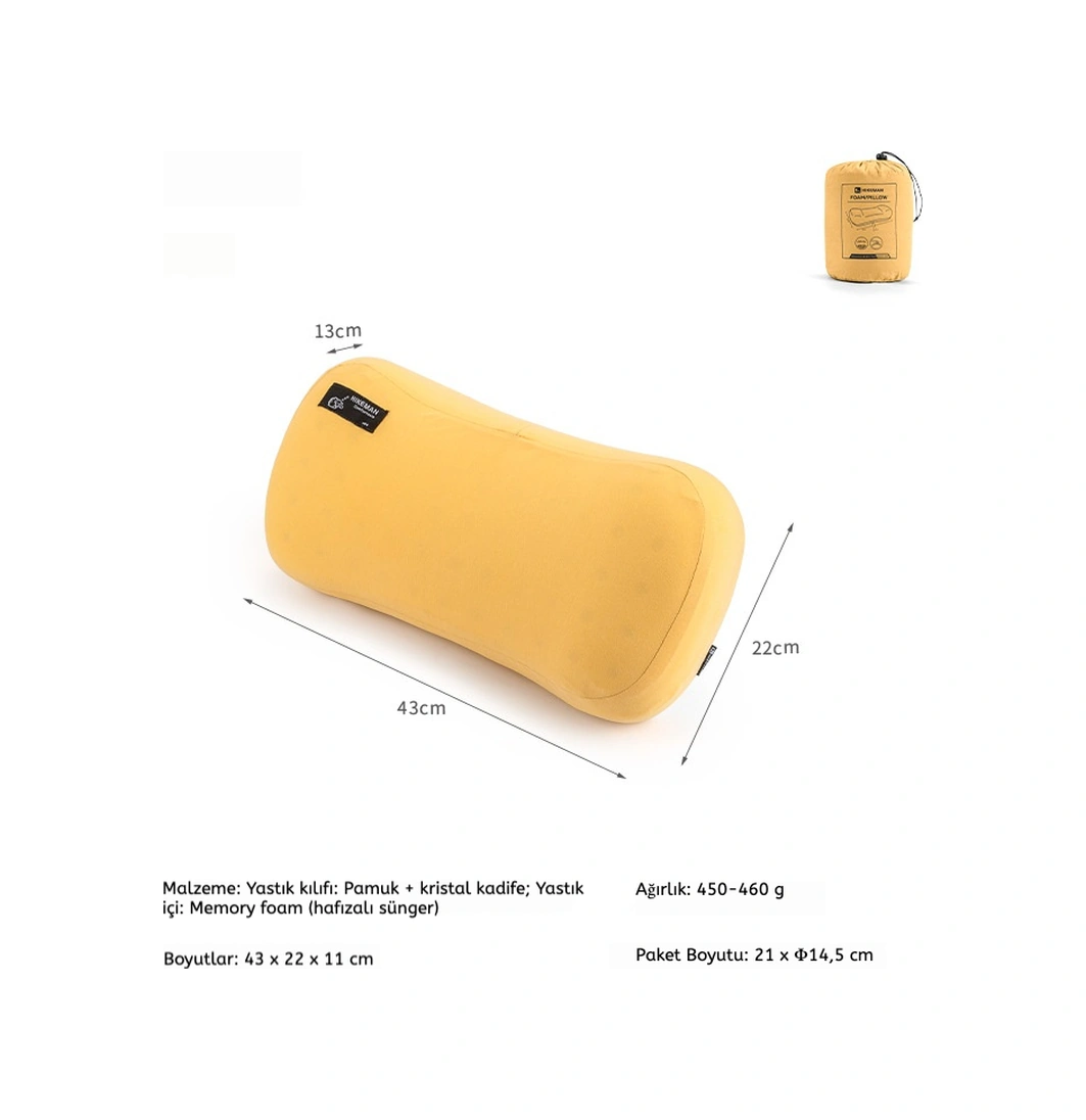 Hıkeman Kamp Yastığı Hafif, Memory Foam Seyahat, Kamp, Ofis Ve Bel Destek Yastığı Sarı