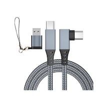 Hızlı Vr Bağlantı Kablosu - 5gbps Usb C-c Gümüş Gri Örgülü 5m + Adaptör