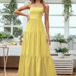 Hnxc Kadın Moda Yaz Bahar Düz Renk Baskı Kolsuz Kare Yaka Günlük Elbiseler Sarı