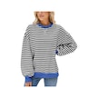 Hnxc Kadın Modası Rahat Çizgili Baskılı Uzun Kollu O-boyun Kapşonlular Ve Sweatshirtler Siyah&beyaz Siyah - Beyaz