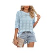 Hnxc Kadın Modası Rahat Yazlık Düz Renk Baskılı 3/4 Kollu O Yaka Bluzlar Ve Gömlekler Mavi