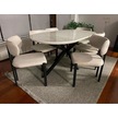 Hobi Beyaz Mermer Görünümlü Oval Masa 6 Sandalye Krem