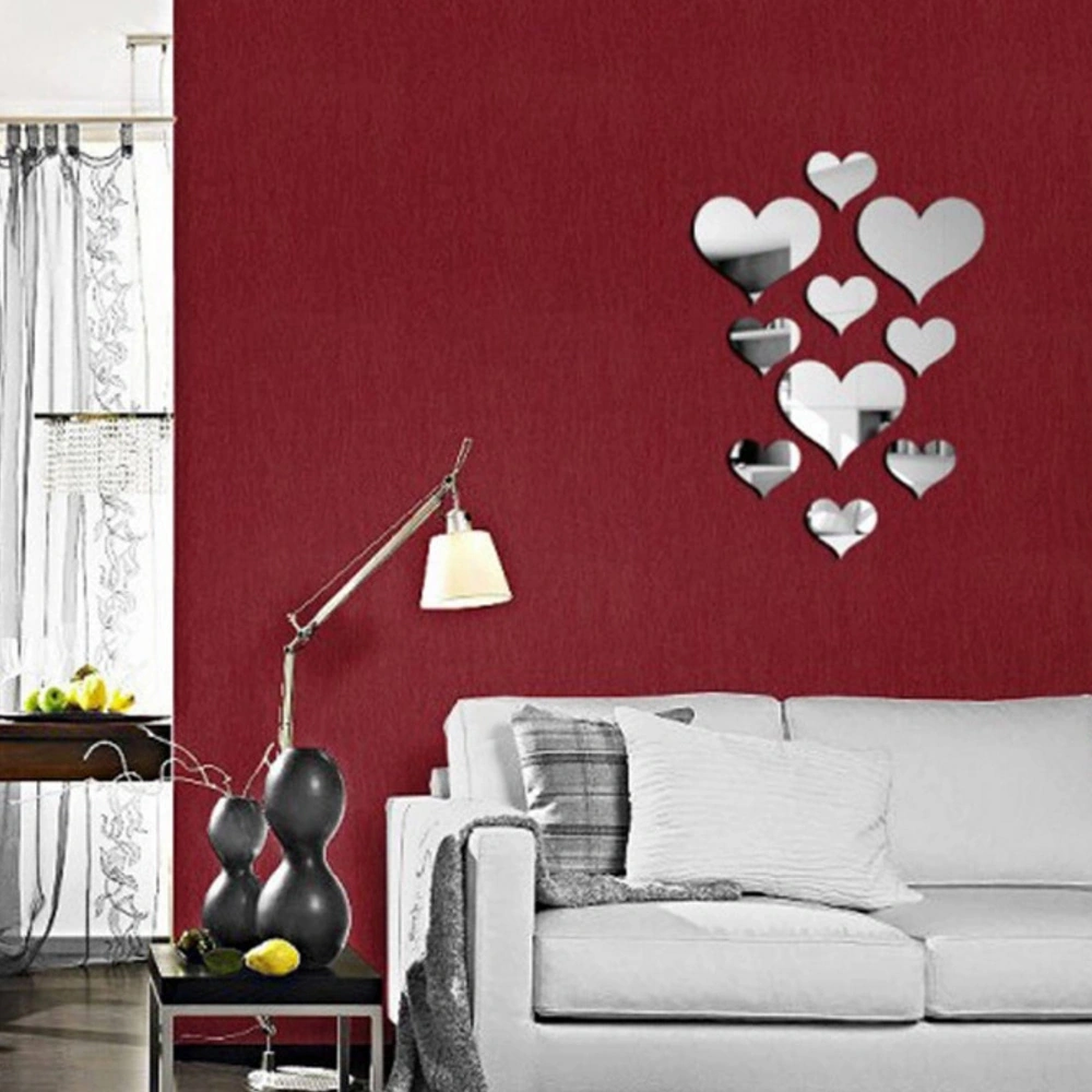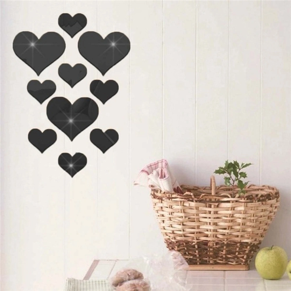 Hombey 10 Adet Siyah Kalp Şekilli 3d Akrilik Ayna Duvar Sticker - Ev Dekorasyonu Dıy Oda Zenginleştirici - Konforlu Ortam Oluşturucu Siyah