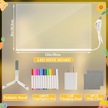 Hombey 30x20cm Büyük Led Işıklı Akrilik Tahta - 12 Renkli Kalem, Açı Ayarlanabilir Tripod, Silme Bezi Ve Şarj Aleti İle Yeniden Kullanılabilir Çizim Ve Not Alma Tablosu Beyaz