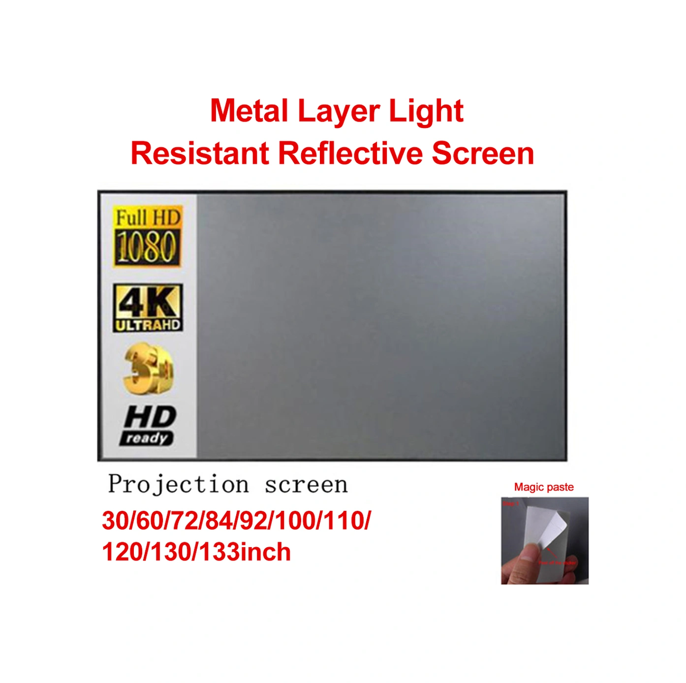 Hombey 72 İnç 4:3 Metal Tabaka Gri Projeksiyon Perdesi - Gündüz İçin Parlaklık Artırıcı, Katlanabilir Ve Taşınabilir, Büyücü Macunlarla Duvara Kolay Yapıştırma