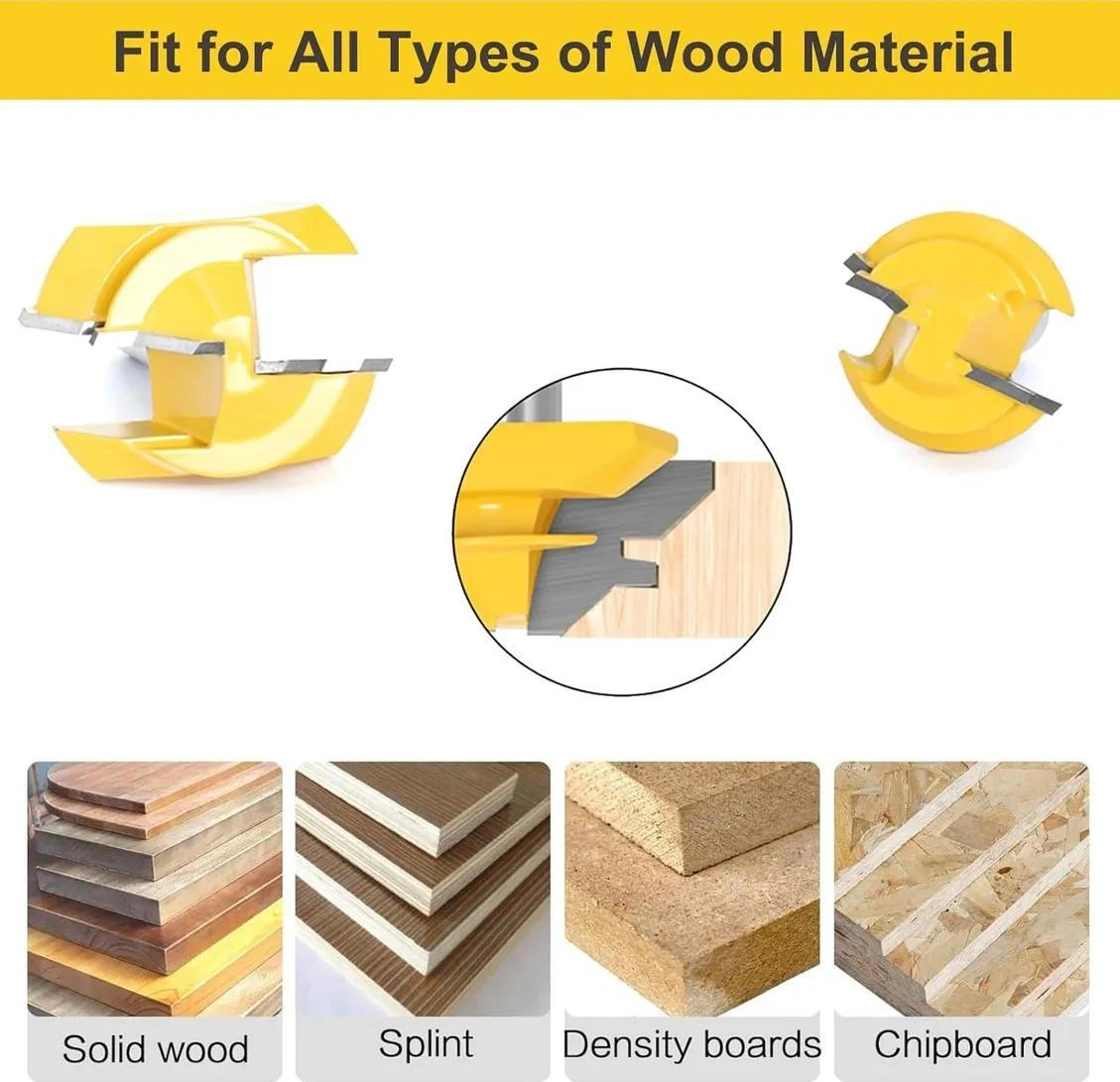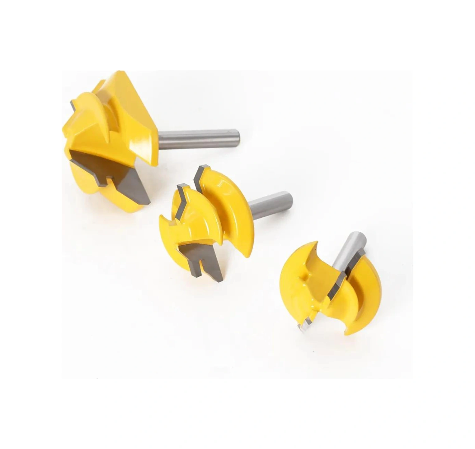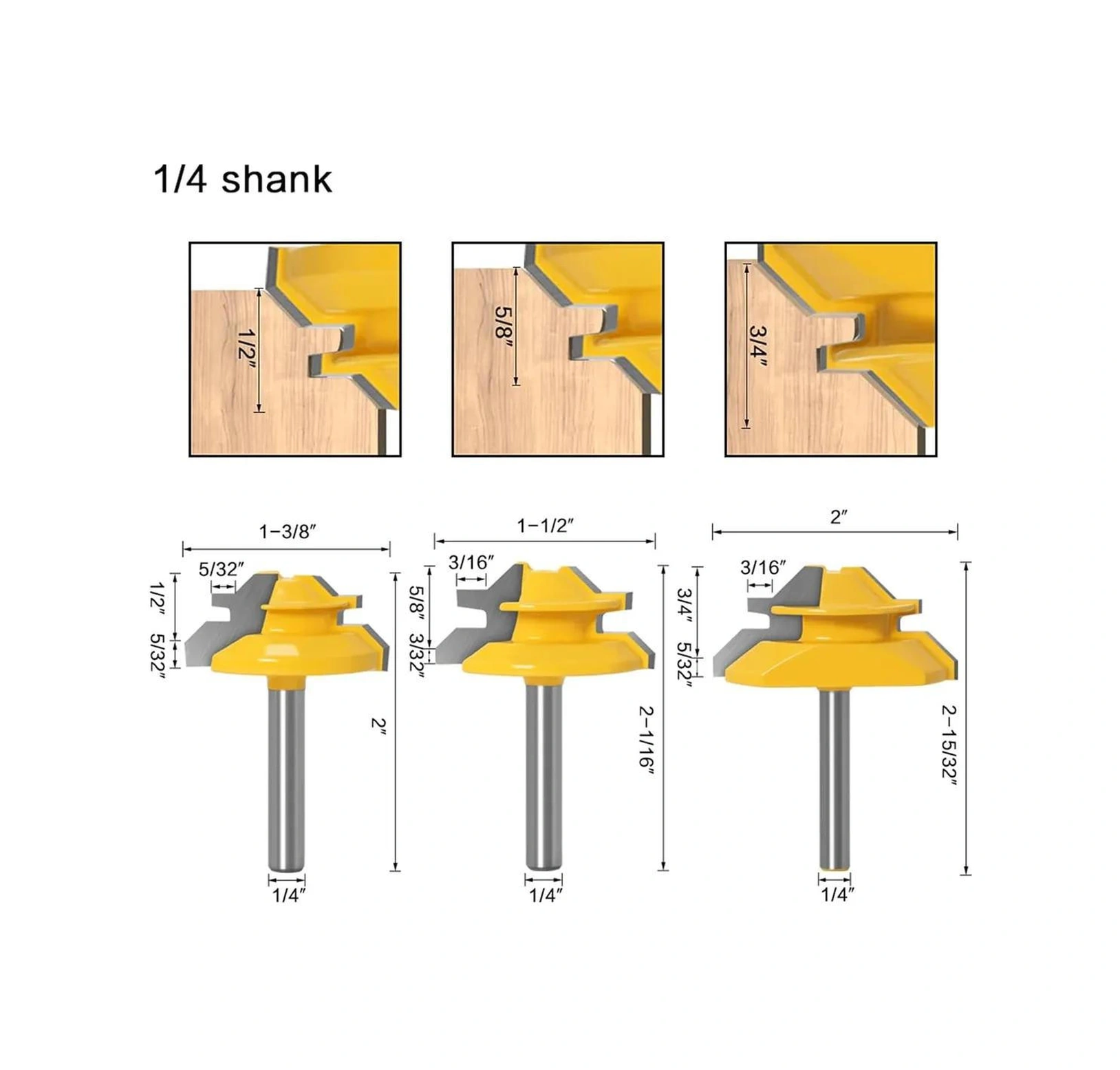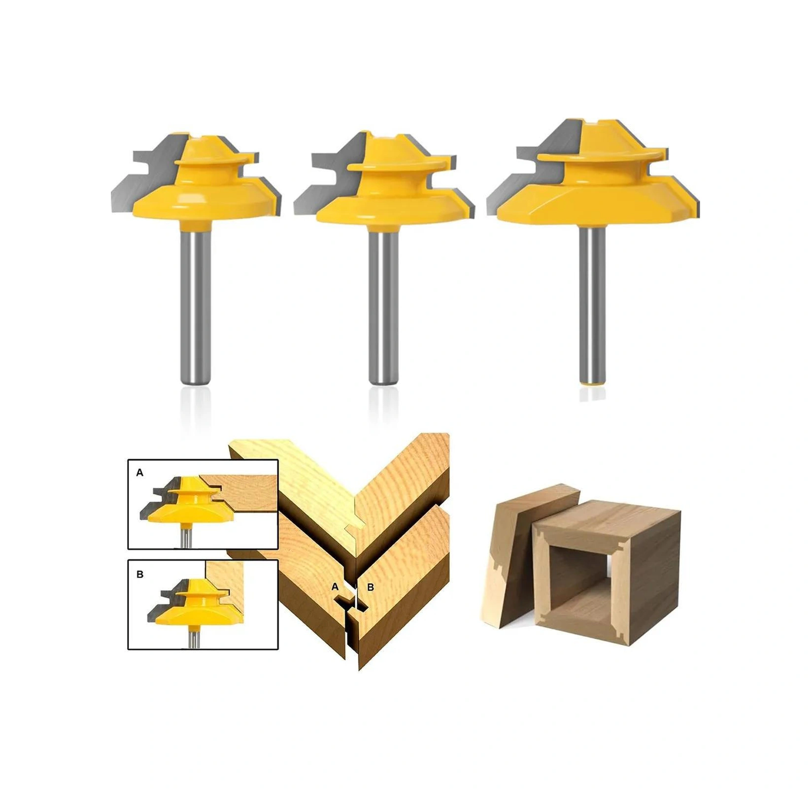 Hombey Ahşap Panel İçin 3'lü Set: 45 Derece Konşekür Bıçağı, Dilimleme Ve Birleştirme - 1/4 İnç Saplı Yg8 Alaşımlı Uç