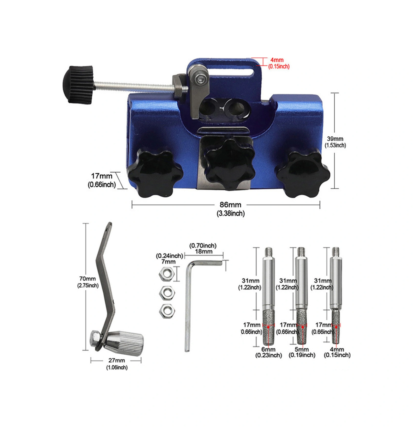 Hombey El Fırçalı Zincir Testere Kesici Ayna - Taşınabilir El Zinciri Kesici Ayna 4/5/6mm 3 Adet Taşınabilir Uçlar Mavi