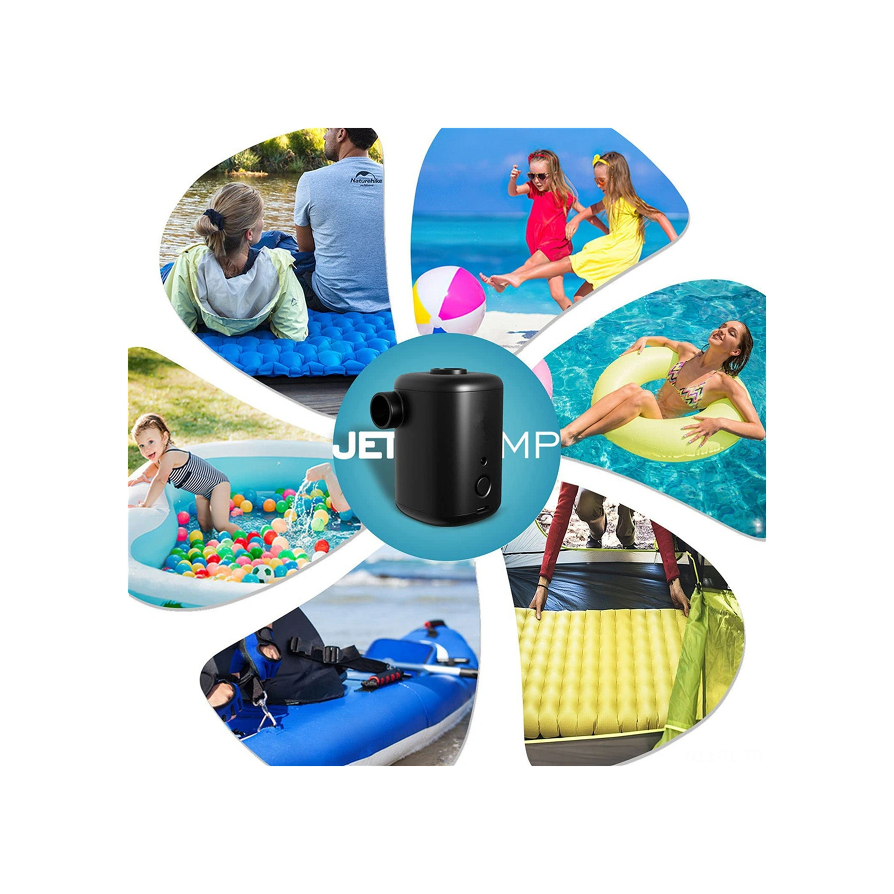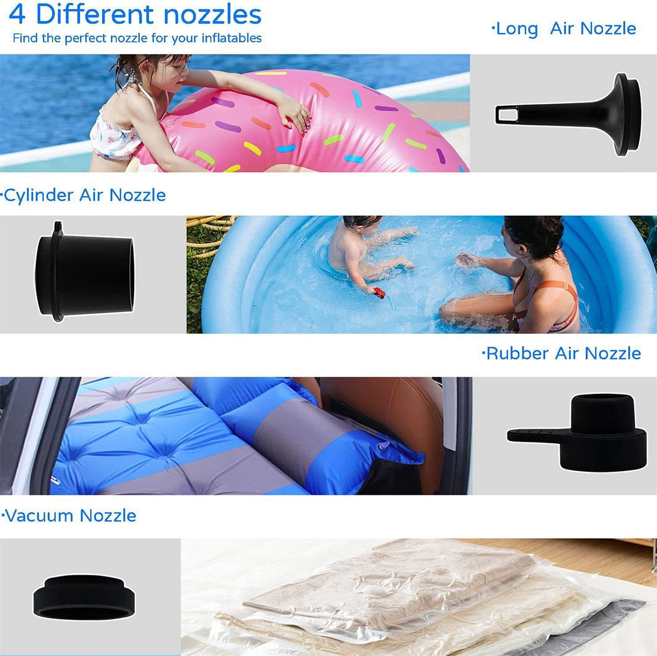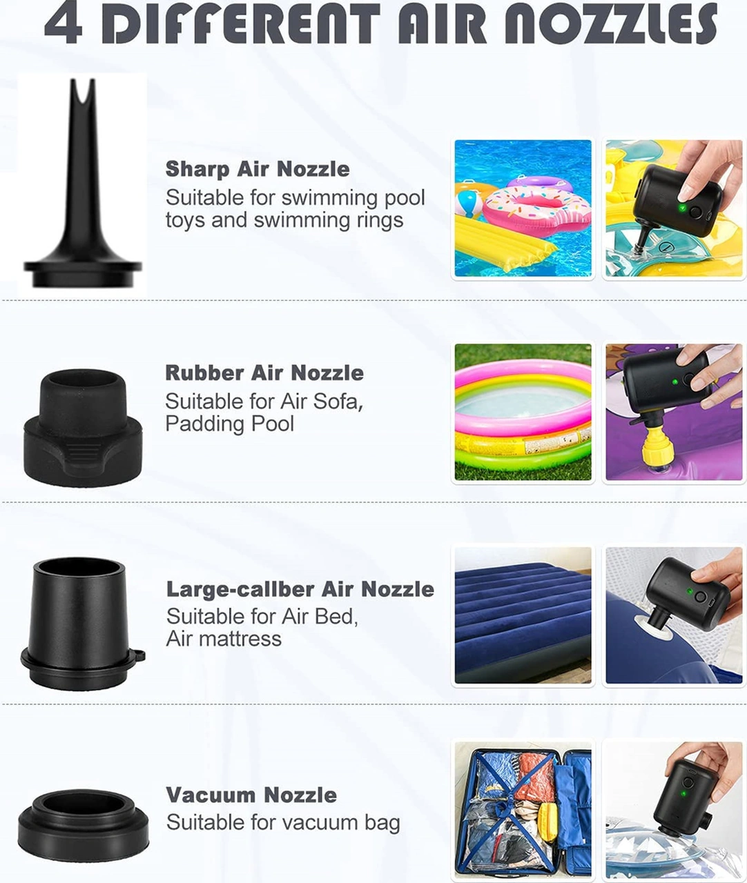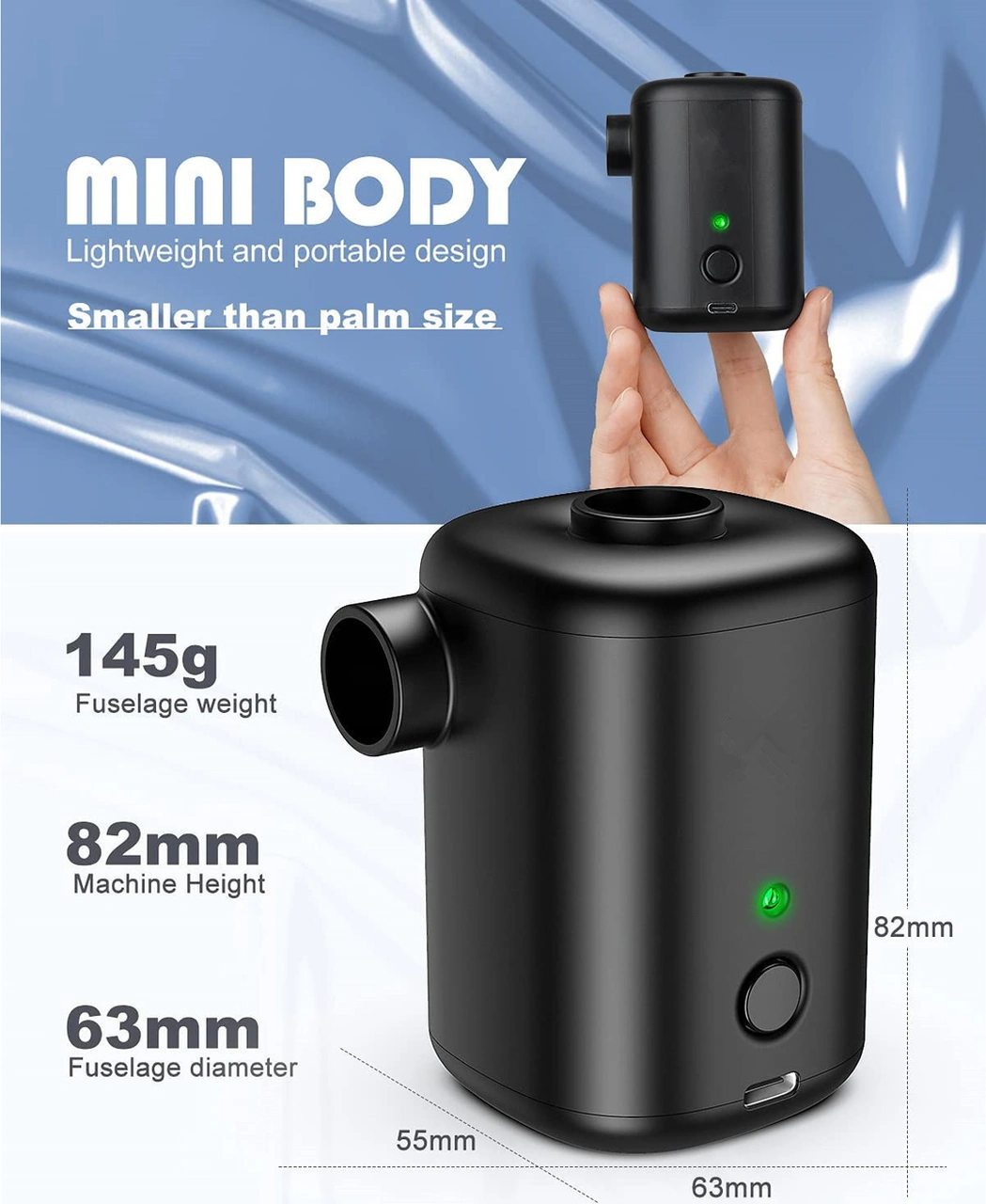 Xindoker Usb Şarjlı Dışarıda Kullanım Li-poly Bataryalı Hava Pompa, 5 Uçlu, Led Işıklı, Havlu Yatağı-havuz-bot Enflasyon-deflasyon, 200l/dak, Siyah