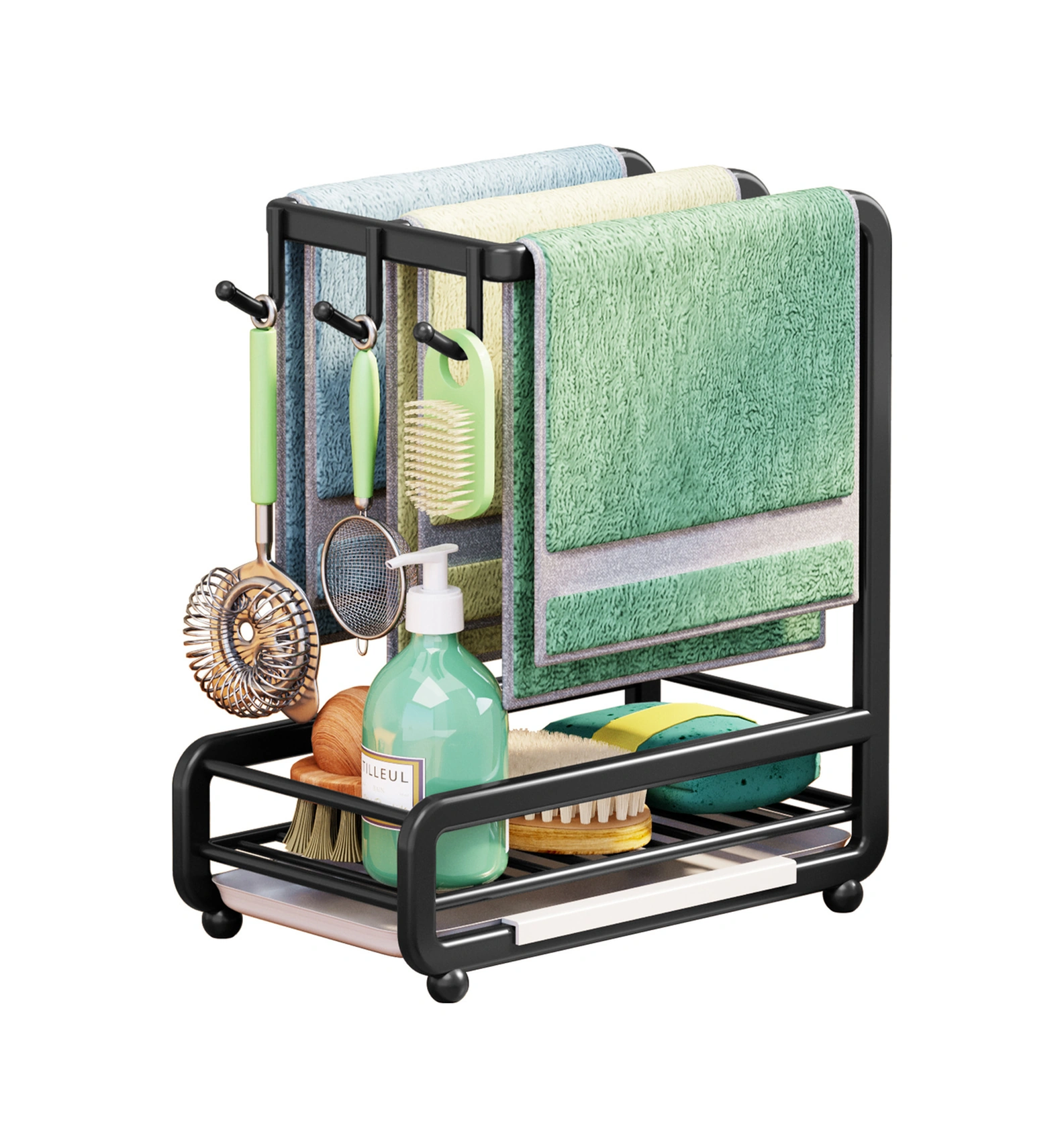 Hombey Karbon Çelik Lavabo Bezi Rafı - Delme Yok Duvar/masaya Takılabilir - Su Alma Tablası İle Sulama Bezi, Havlu, Sponge Saklama Rafı - Siyah 28x24.5x14cm Siyah