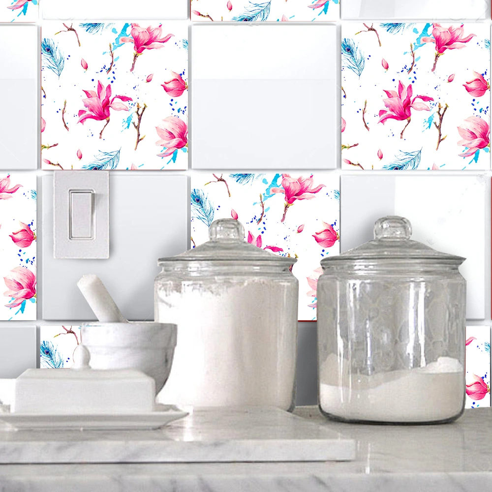 Hombey Klasik Mavi Zemin Desenli Otomatik Yapışkan Duvar Çini Sticker 20x20cm 10 Adet - Ev Dekoru İçin Kolay Uygulama Ve Kaldırma Özelliği Diğer