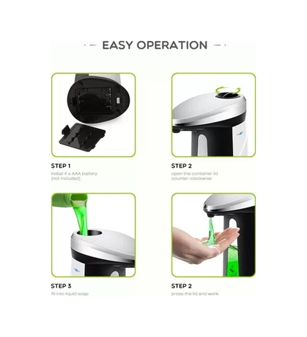 Hombey Otomatik Algılama Sabun Dağıtıcı 400ml - Banyo/ Mutfak Kullanıma Uygun, Pil Dahil Değil, Abs Malzeme Beyaz - Siyah