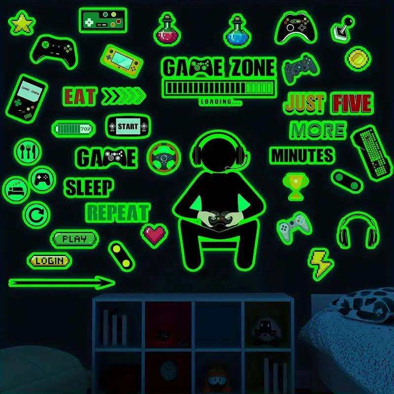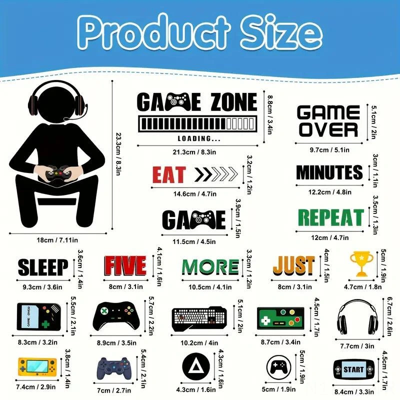 Hombey Oyun Odası Dekorasyonu Işıklı Oyun Sticker'ları - Kumanda, Konsol Desenli Duvar Sticker'ı, Erkek Kız Odası Dekoru, 30x20 Cm Beyaz