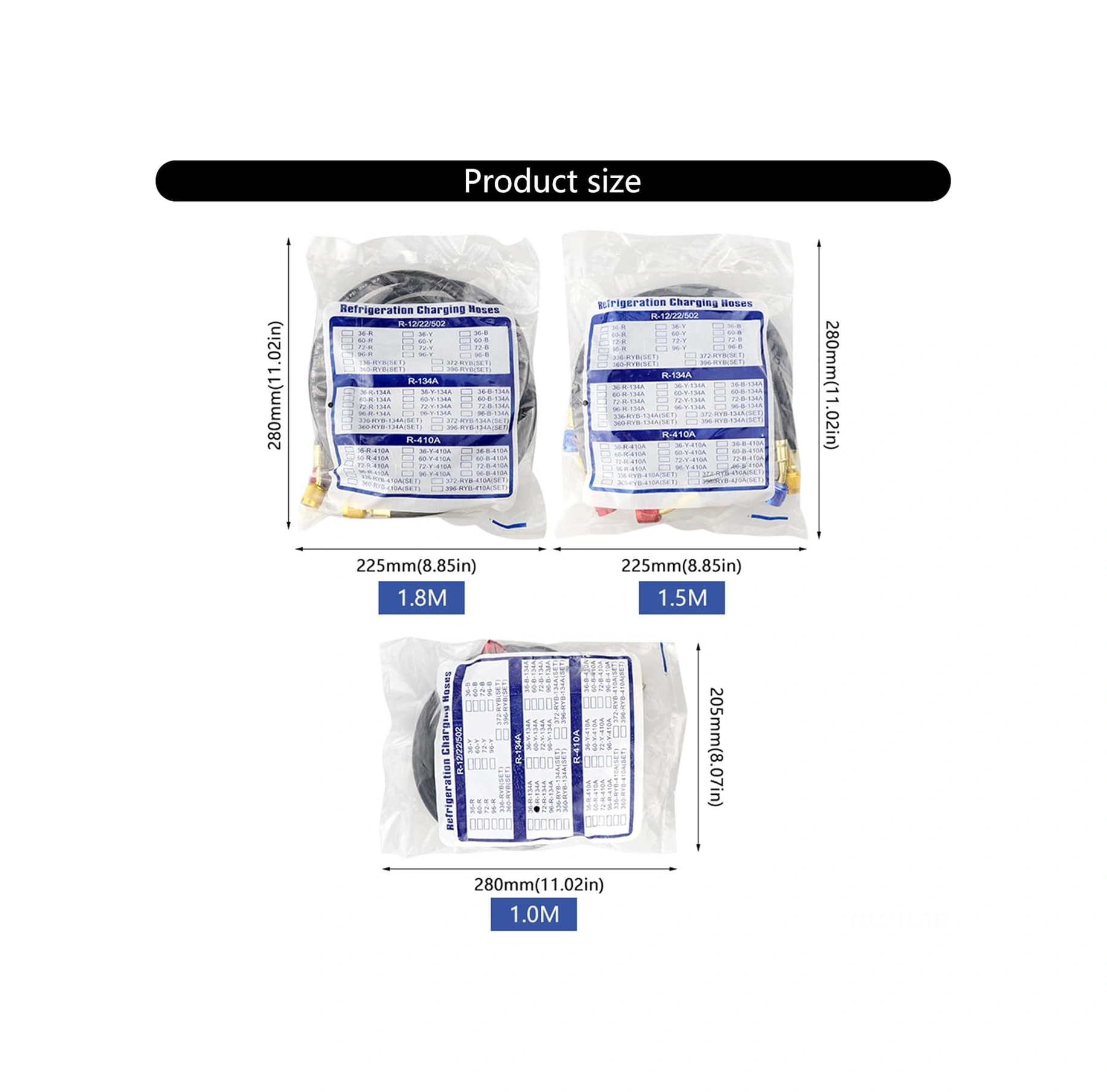 Hombey R22/r134a/r410a Soğutucu Yükleme Hortumu Seti - 1m Dayanıklı Kauçuk, 800 Psi Çalışma Basıncı, Otomobil Ve Konut Klimaları İçin