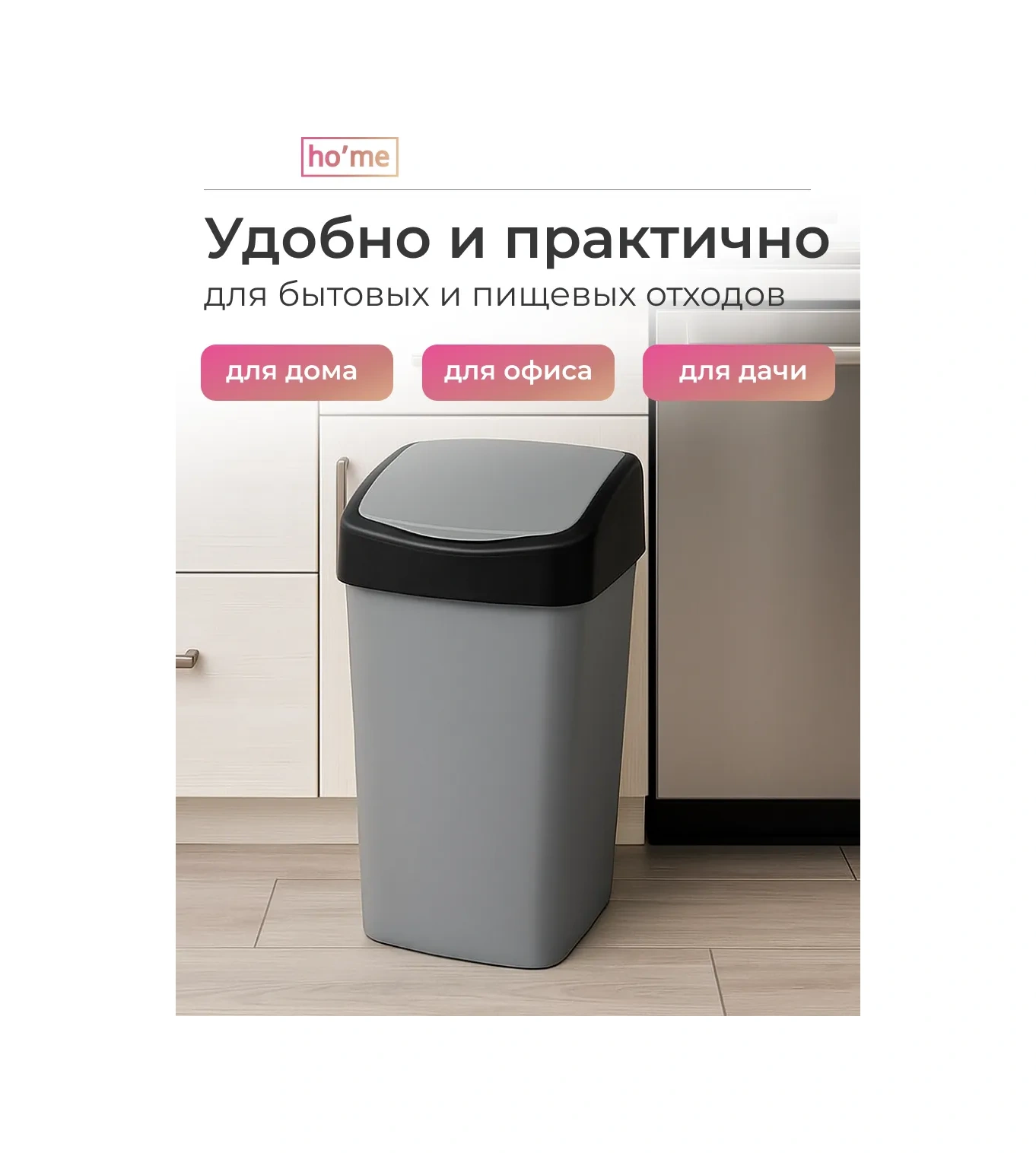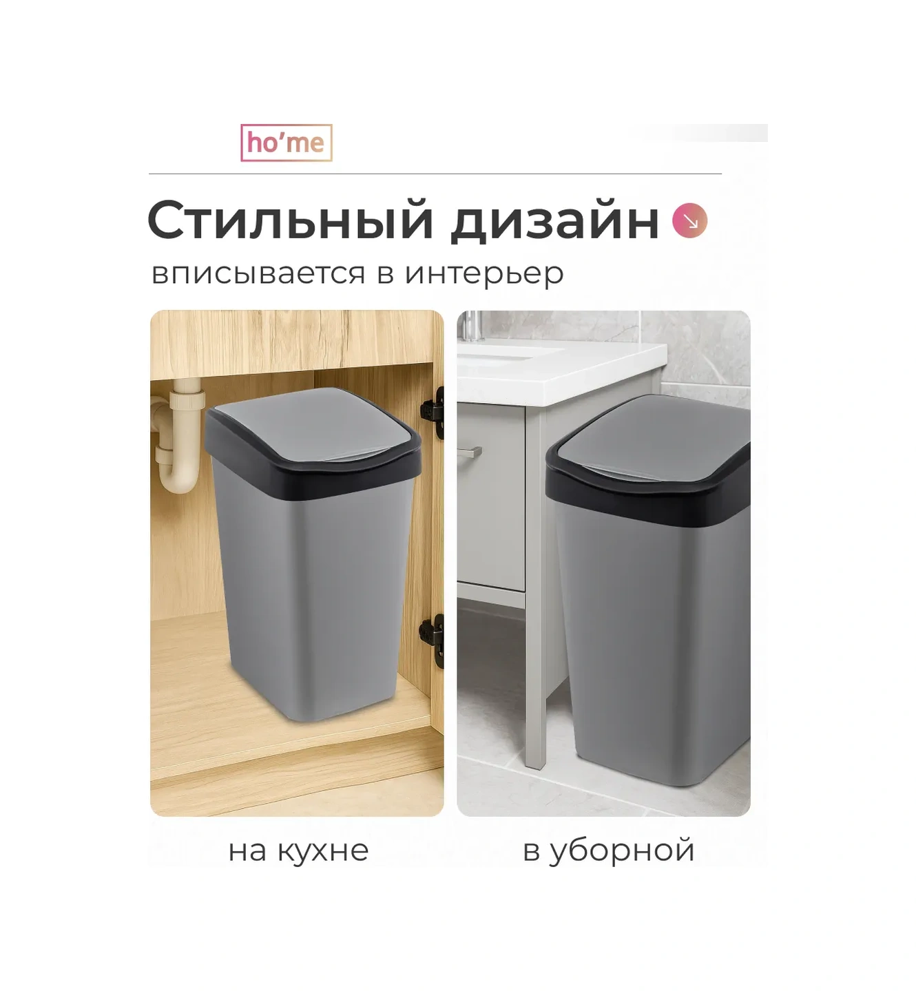 Ho'me Mutfak İçin 35 Litrelik Kapaklı Çöp Kovası 458436558 Gri