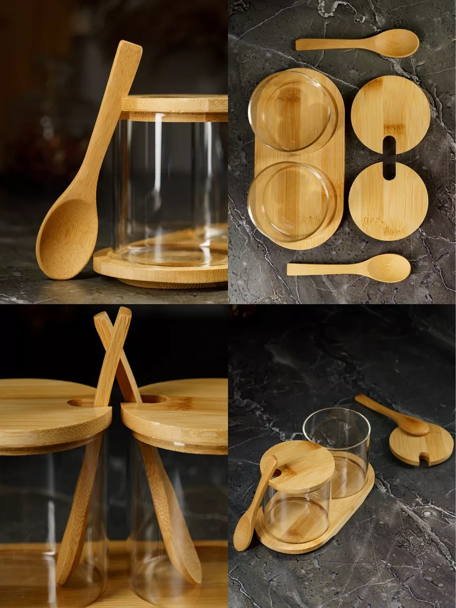 Homehoud Şekerlik Ve Tuzluk Kaşıklı Set Kahverengi İle Birlikte 188900137 Beyaz